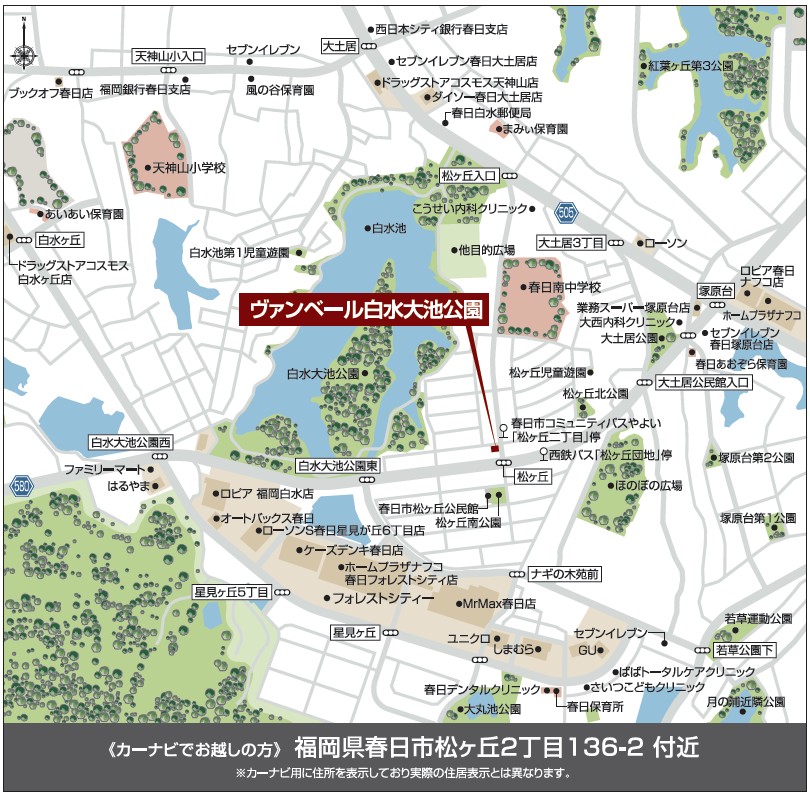 緑豊かな白水大池公園と春日フォレストシティに近い閑静な住宅街の角地。 春日南中学校へは徒歩約4分、お買い物も便利な利便性の高い街。